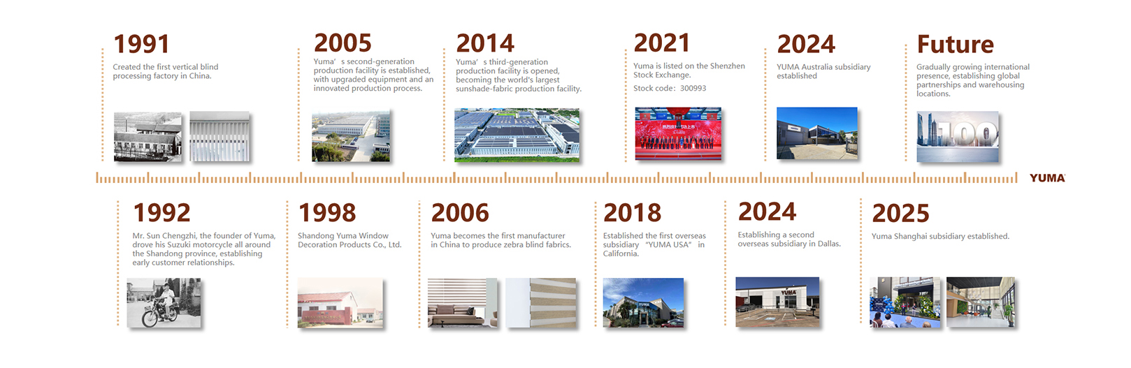 To establish Yuma as the global leader in the sun-shading industry and build a century-old enterprise.