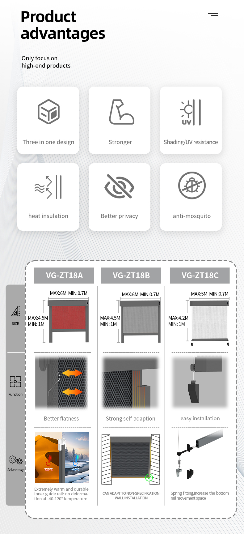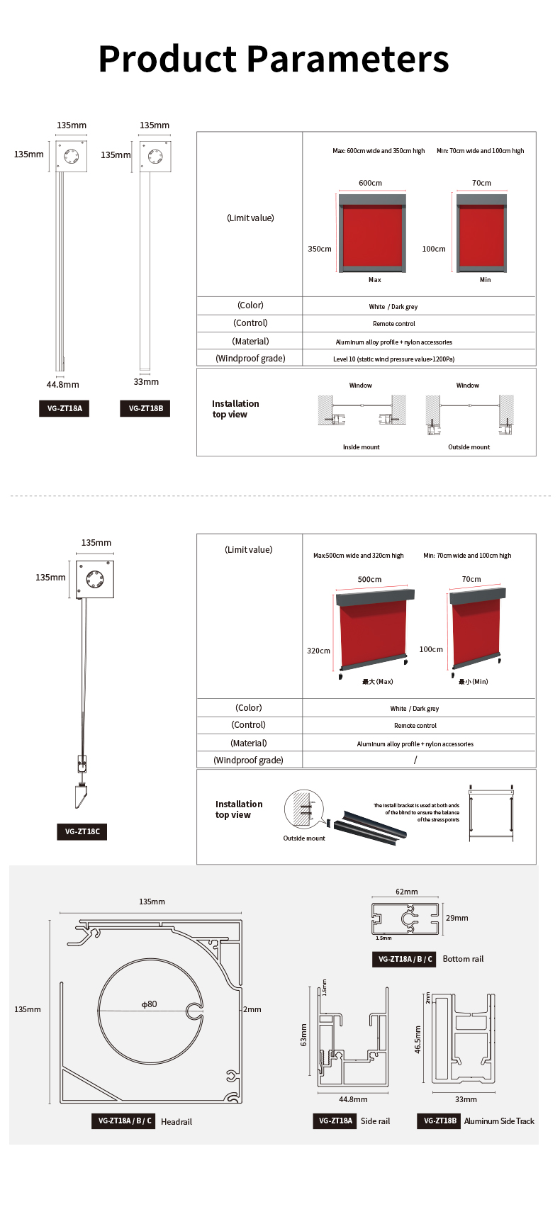 The inner guide rail, aluminum guide rail and wire ropecan be selected according to different use scenarios.
